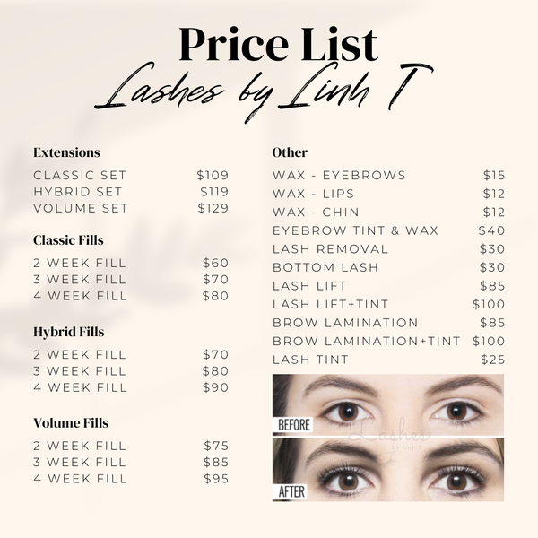 At Lashes by Linh T, not only do we specialize in eyelash extension services, but we also offer waxing services at reasonable prices.